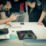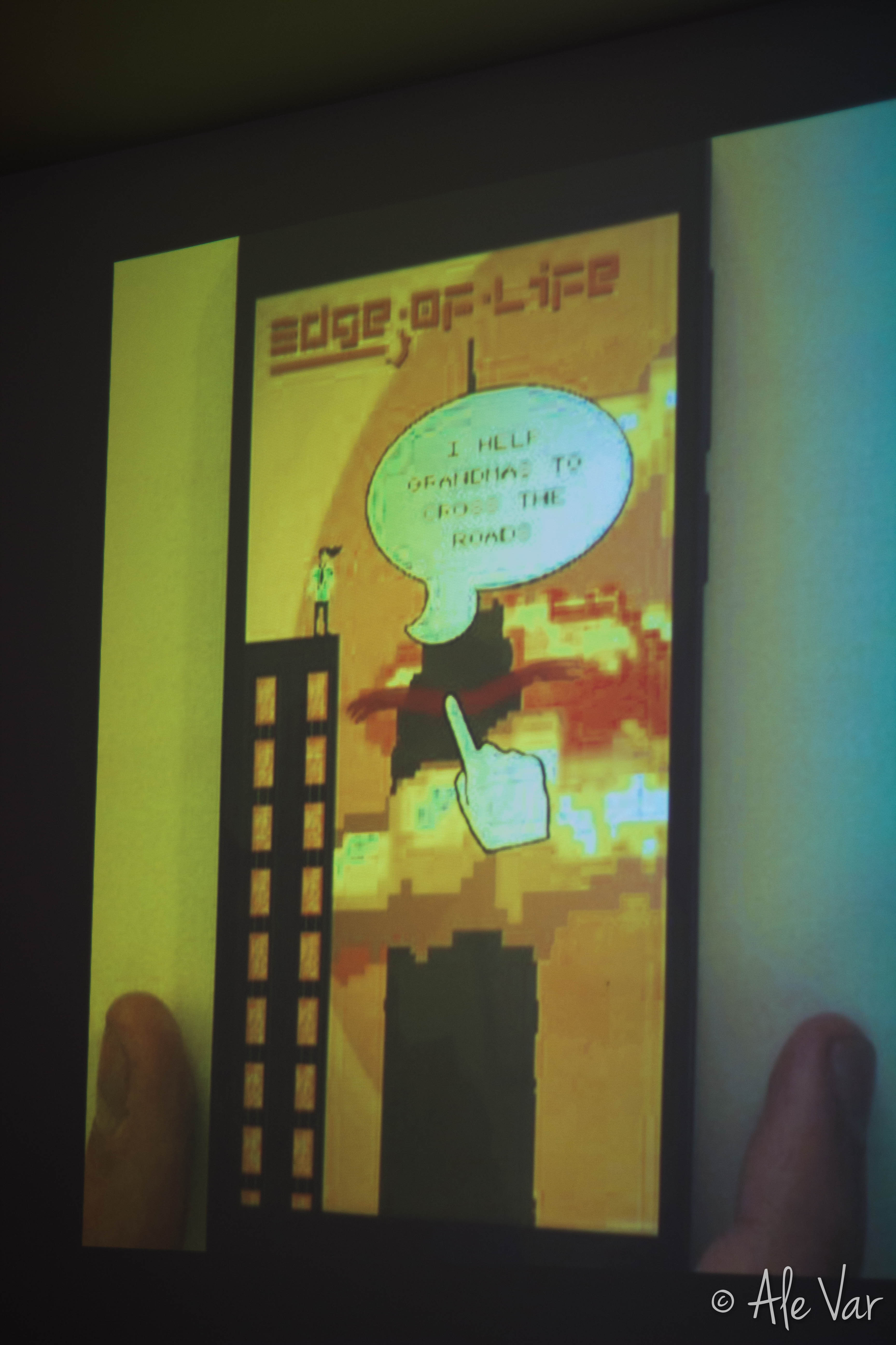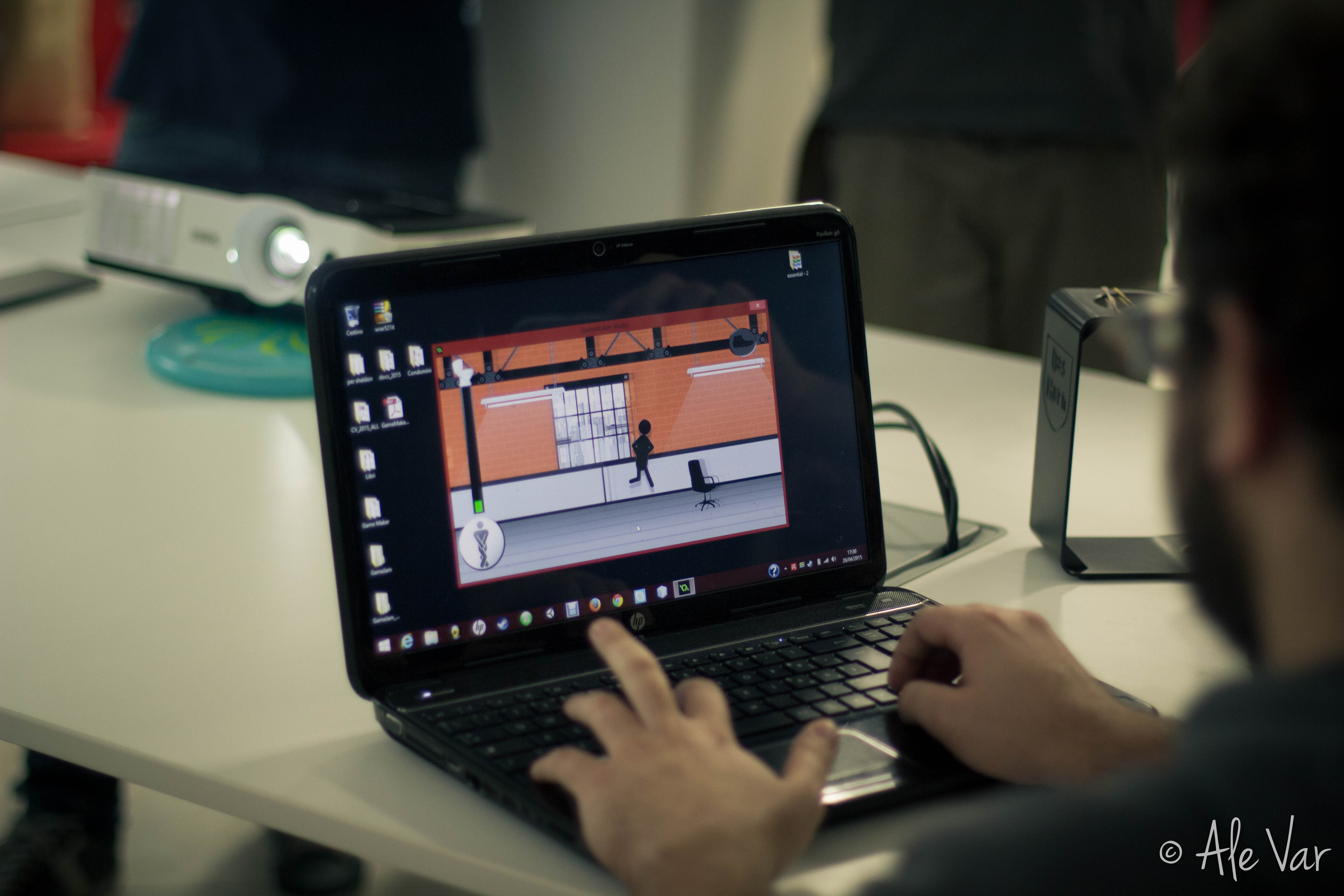 E’ ora il momento degli “sfocati”, in foto, Italian Hobos, lucidissimi invece per quanto riguarda il loro prodotto The Edge of Life. Alessandro (grafico, programmatore), Federico (programmatore), Luca (programmatore) e Lorenzo (sound designer) hanno dipinto invece un po’ di disperazione raccontando la storia di un uomo che viene costretto a buttarsi da un palazzo (addirittura dal giocatore). Ma non tutte le storie tristi devono per forza finire male, giusto? Infatti al voi l’arduo compito di attutire, con oggetti come materassi, la caduta del nostro eroe per portarlo a terra sano e salvo e soprattutto per battere il precedente record. Anche loro hanno usato Unity 3D. Curiosità: l’autore delle bellissime foto che vi stiamo proponendo militava proprio nel team degli Italian Hobos ed è AleVar (il terzo da sinistra) e si vede! Da cosa? Dal fatto che questa sia l’unica foto sfocata… visto che è stata realizzata da qualcun altro 😉