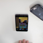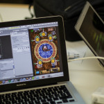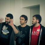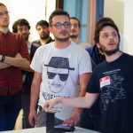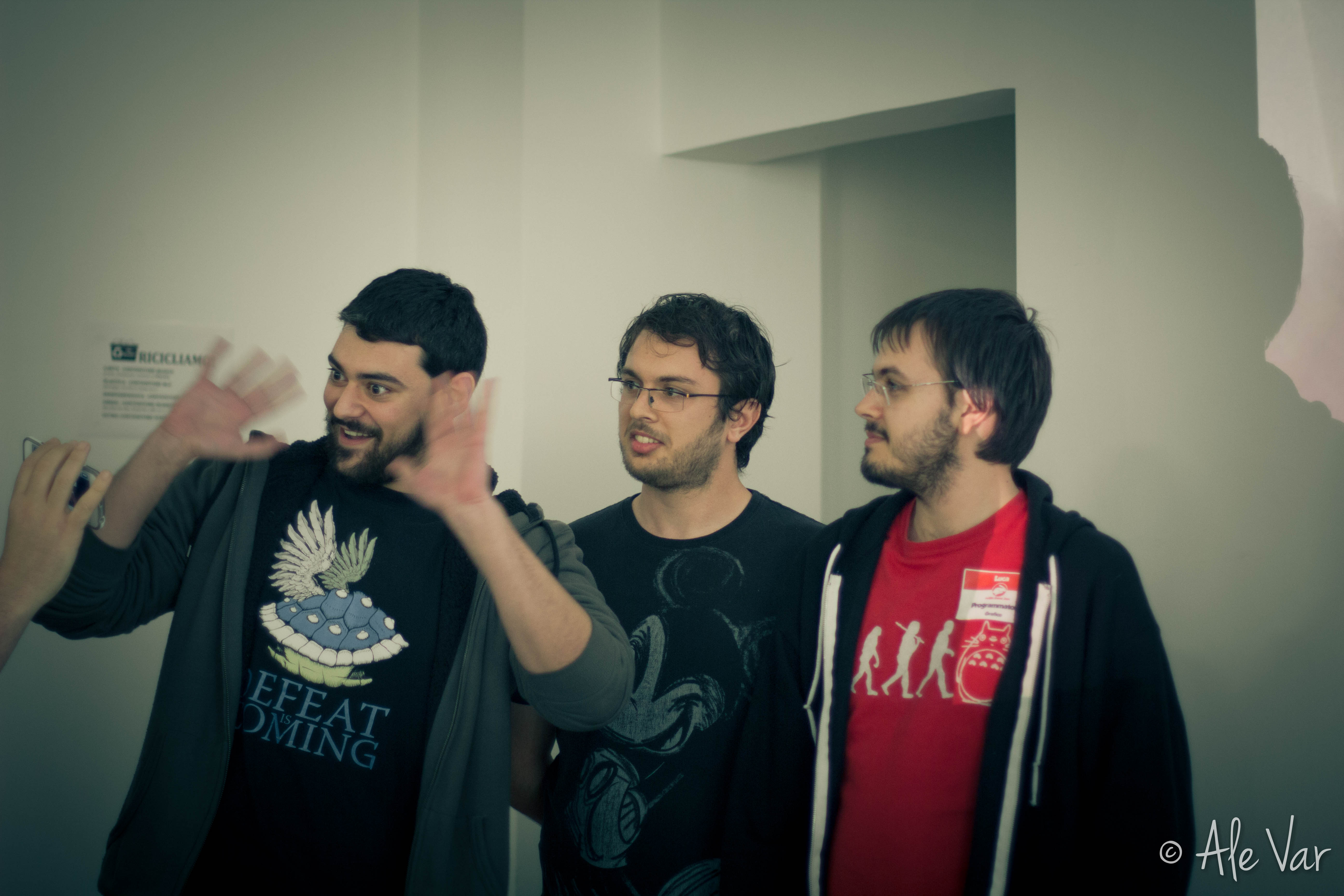 Penultimo team in gara, era il team Celia Lab che purtroppo in foto è più un single player che un multiplayer. Al momento dello scatto, infatti, Emanuele (programmatore) era già tornato verso casa mentre Luca (programmatore, grafico) si è comunque prestato ad essere immortalato. Il prodotto da loro sviluppato si chiama Rolling Cat, cioè un micione che ha mangiato davvero troppi croccantini per reggersi in piedi costretto a scivolare sulle superfici piuttosto che a camminare. Il compito del giocatore è quello calcolare bene la tempistica con la quale allontanare, tappando sullo schermo e generando delle onde d’urto, il felino dai mortali ostacoli. Indovinate cosa hanno usato? Si, proprio Unity 3D!