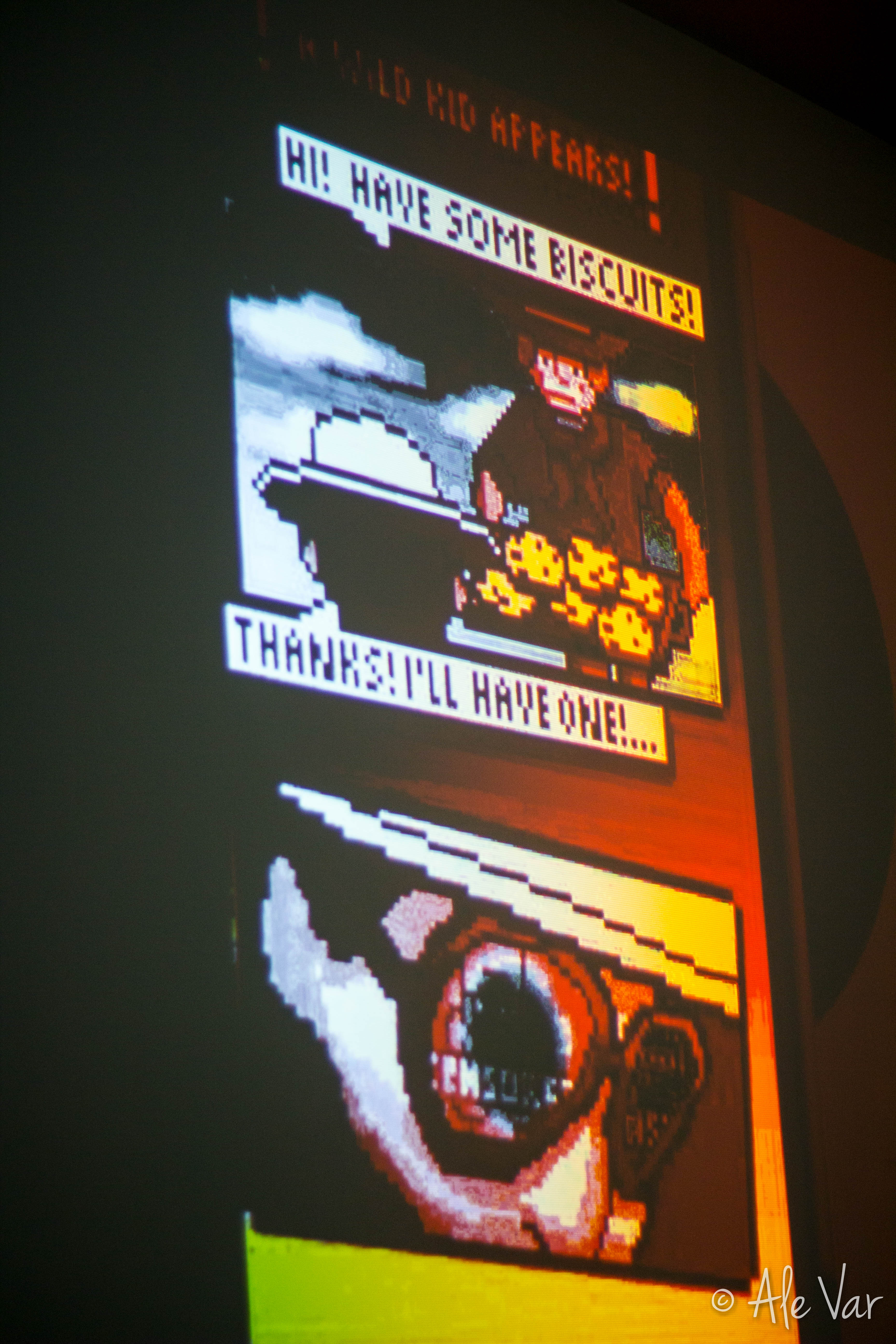 … i Monkeys Jam! Pietro (Programmatore, Grafico), Eugenio (programmatore), Enrico (Programmatore), Francesco (grafico) e Francesco (sound designer). Nella foto ci sono anche i soci di redBit games (Francesco Comi, Gabriele Achler, Giordano Tomassorri e Massimo Guareschi) mentre è assente Enrico. Il loro gioco, tutto in pixel art, si chiama Magic Carpet High Experience e parla dell’esperienza extrasensoriale avuta dal protagonista sul tappeto di casa: un viaggio psichedelico che lo porterà a sconfiggere orde di nemici improbabili, tra cui una prostituta vestita da nazista. Un gioco davvero divertente e sviluppato in maniera impeccabile da un team di persone che si sono conosciute alla Jam e che provenivano da diverse parti d’Italia, da Trieste a Salerno. Una bella pubblicità, davvero, per tutti coloro che credono nell’Italia che programma!