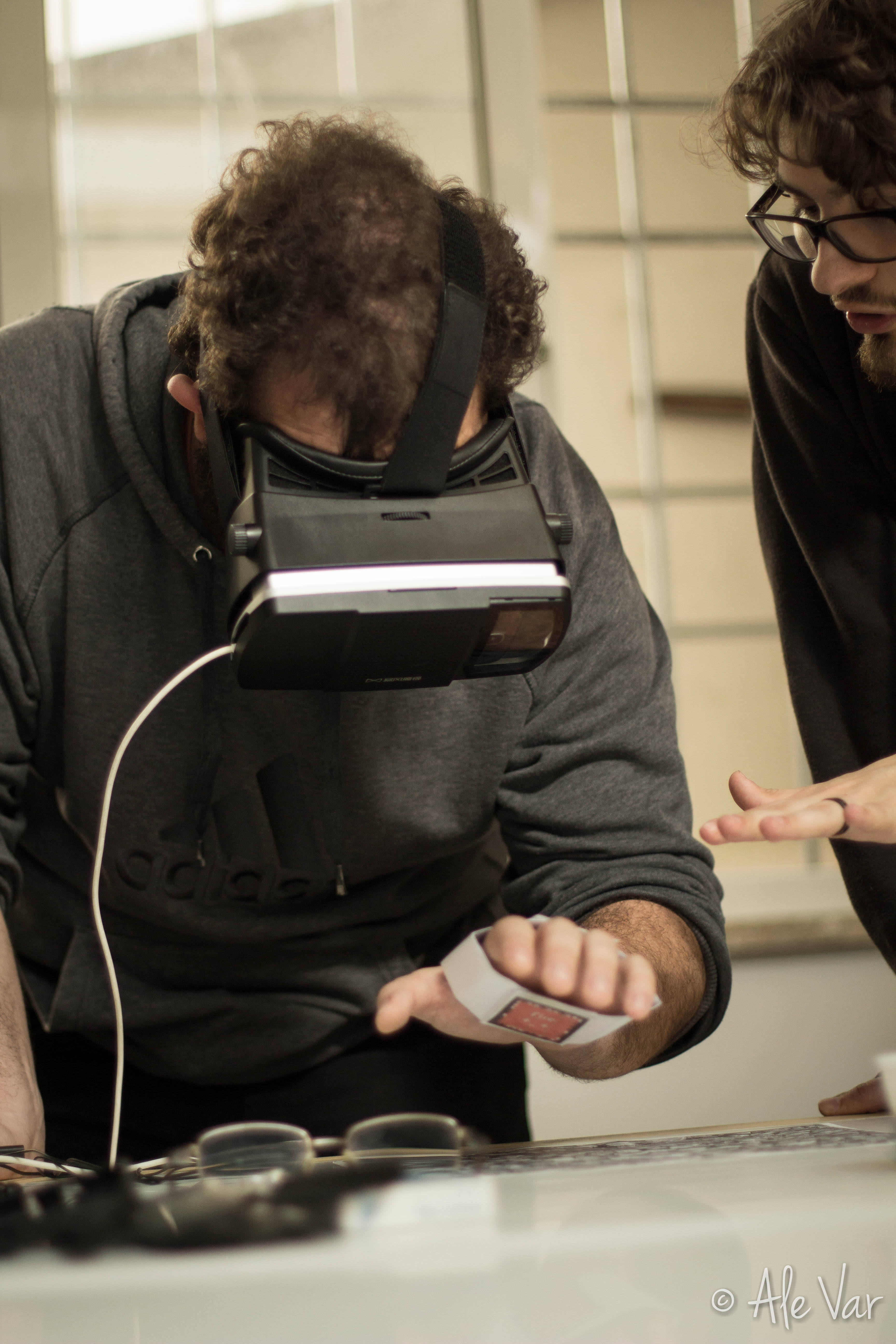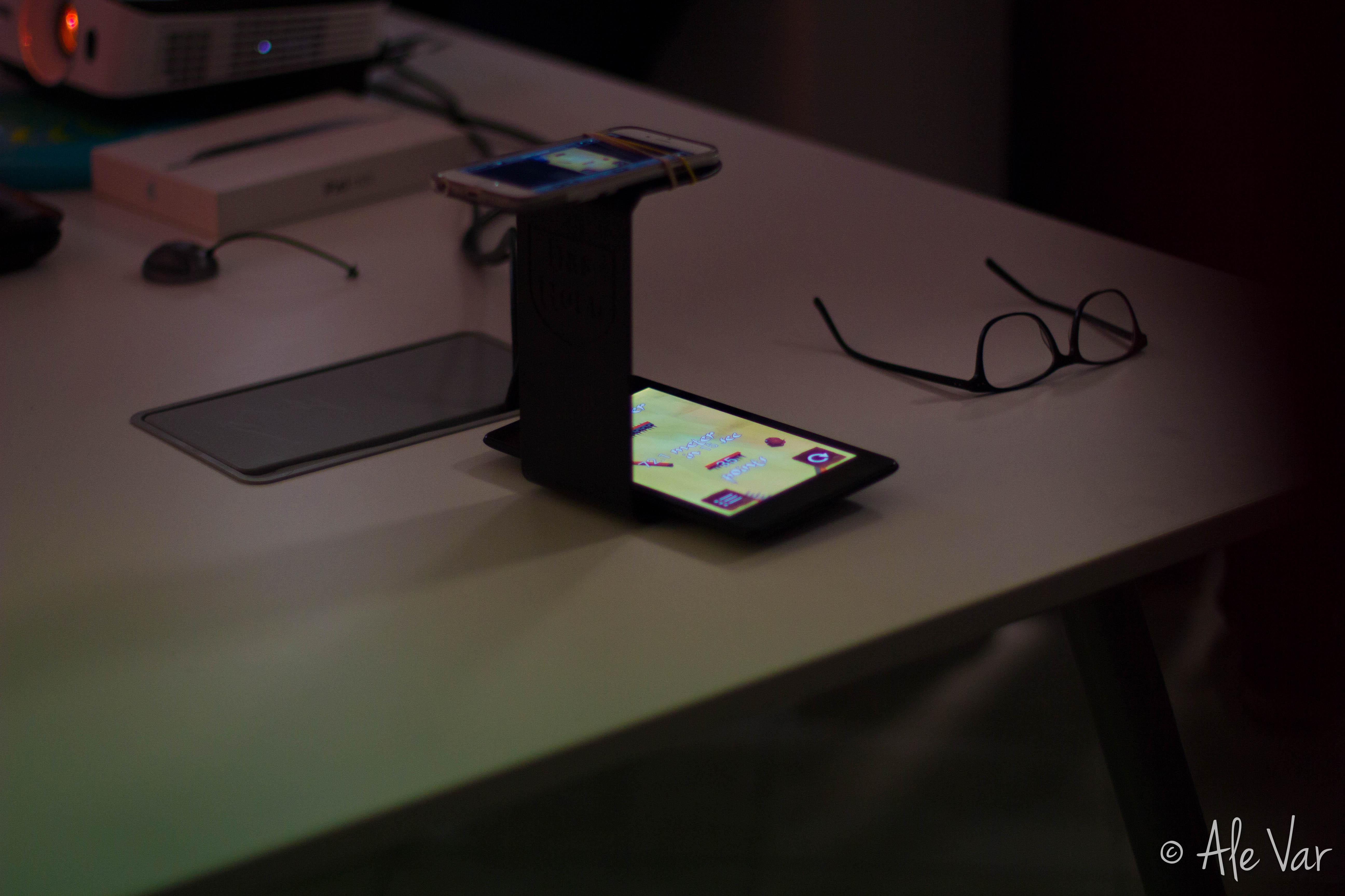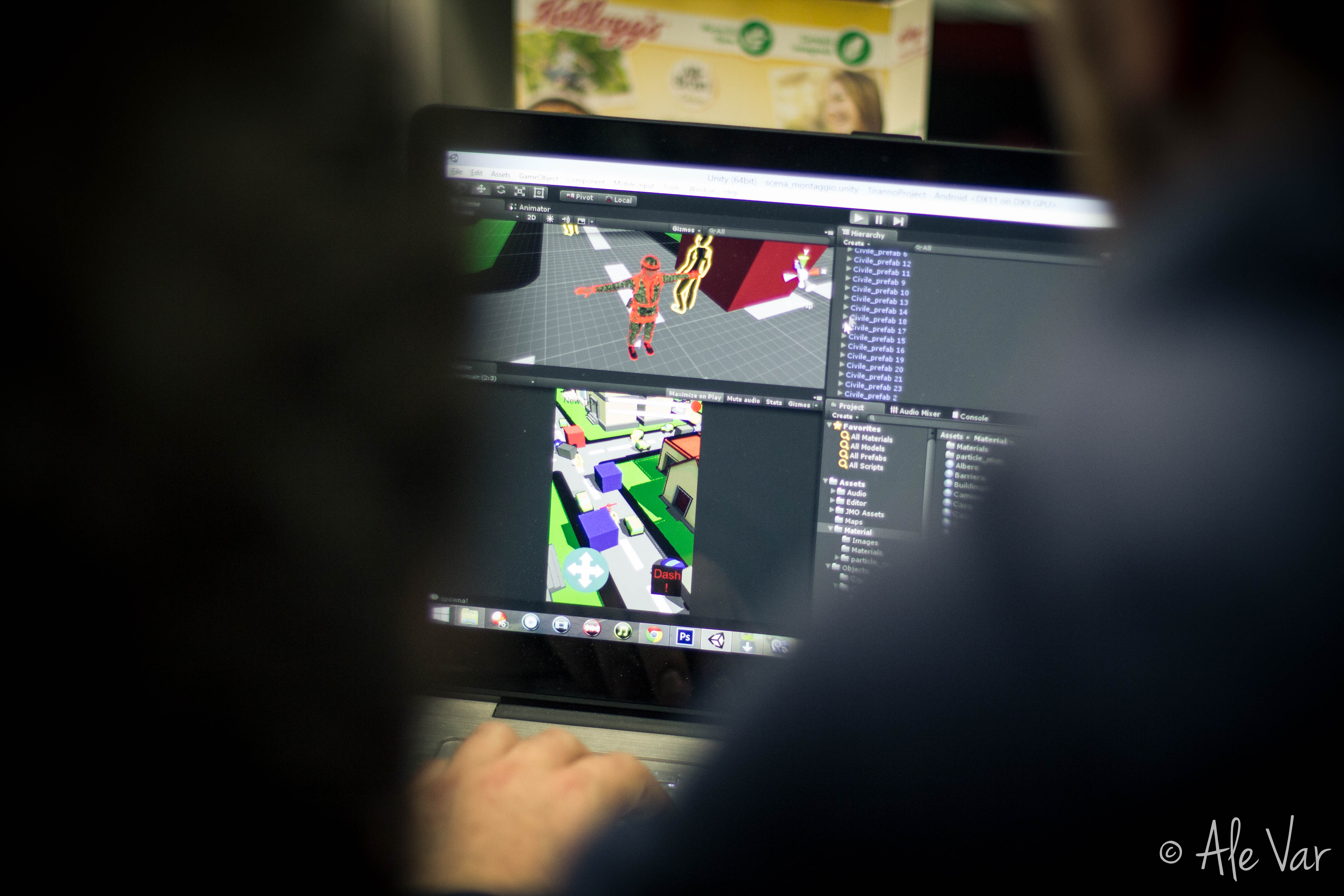 Ed eccoci arrivati ai Dev Dot, Francesco (grafico, animatore), Vincenzo (programmatore) e Simone (grafico, sound designer). Il loro gioco? Mmm più una tech demo davvero interessantissima di cosa si possa fare con la realtà aumentata. Me God è il titolo del prodotto che ci hanno presentato a fine jam e siamo davvero rimasti a bocca aperta nel vedere il nostro braccio trasformarsi in un animazione virtuale sotto gli occhi della telecamera dello smartphone. Roba da Johnny Mnemonic, credeteci! Sempre Unity 3D.